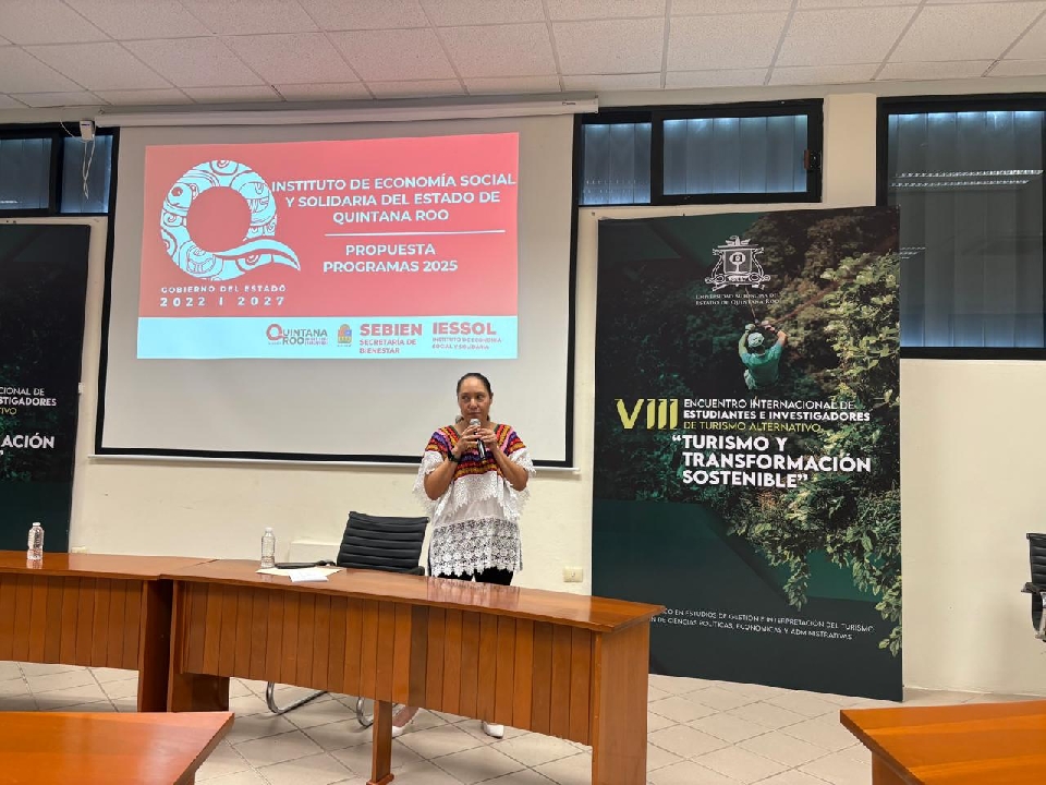 Entre los ponentes participantes a este VIII Encuentro Internacional de Estudiantes e Investigadores de Turismo Alternativo, se encuentra la Lic. Irazú Marisol Sarabia May, titular del Instituto de la Economía Social y Solidaria en Quintana Roo explicó el funcionamiento de la dependencia y sus vínculos con el turismo comunitario.