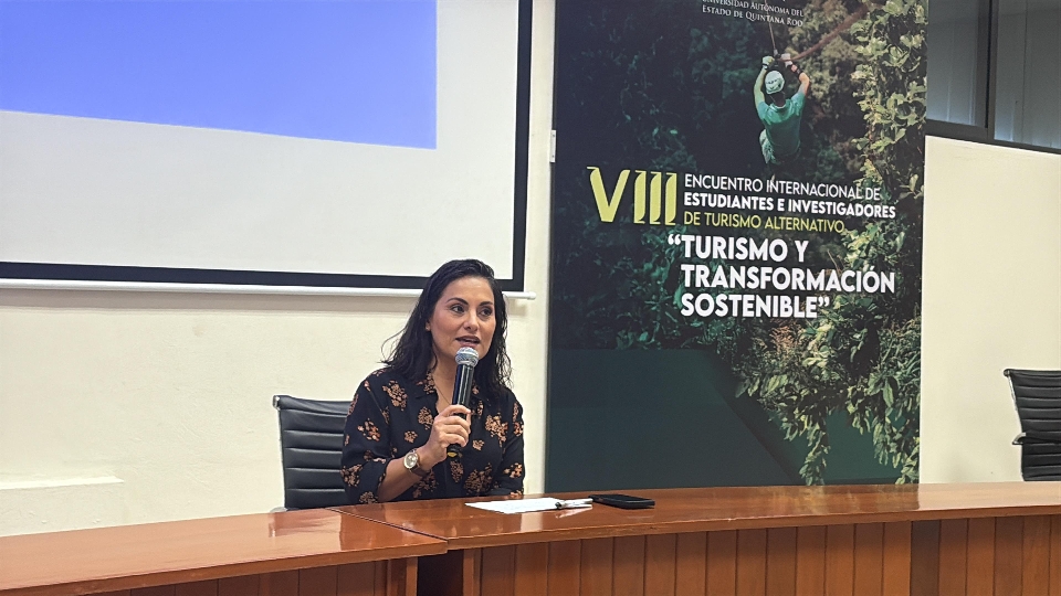 Turismo y Transformación Sostenible es el tema con el que el Cuerpo Académico en Estudios de Gestión e Interpretación del Turismo que depende de la División de Ciencias Políticas, Económicas y Administrativas de la UQRoo, condujo el VIII Encuentro Internacional de Estudiantes e Investigadores de Turismo Alternativo en el aula magna uno del campus Chetumal Bahía. La Dra. Ilia Alvarado Sizzo, del Instituto de Geografía de la UNAM abrió la jornada académica con la conferencia “Turismo, sociedad y ambiente: ¿es posible un equilibrio?”, en el que expuso la fragilidad del entorno natural y de la necesidad de crear conciencia de modo que el cuidado de la naturaleza no sea moda sino una acción permanente, en principio como acto de supervivencia.