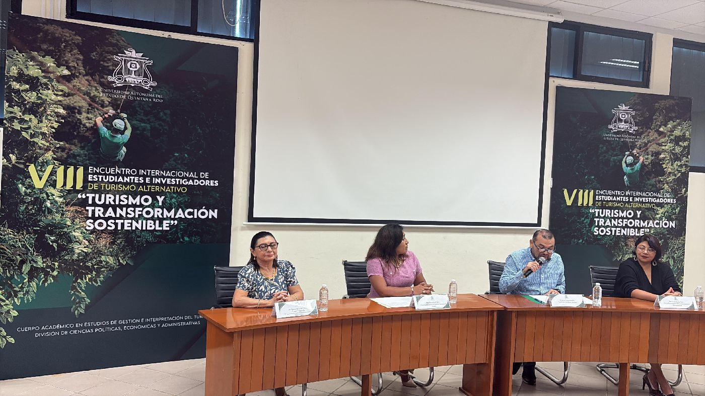 Ante alumnado de la Licenciatura de Gestión de Turismo Alternativo, refirió que los temas centrales como el turismo regenerativo en el Caribe mexicano, el empoderamiento comunitario, el turismo cultural, y la gestión del patrimonio natural y cultural son ejes fundamentales para pensar un modelo de desarrollo que no solo genere beneficios económicos, sino que también cuide de la comunidad y su entorno al tiempo que genera identidad.