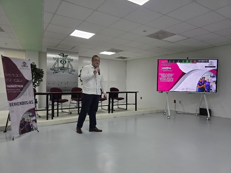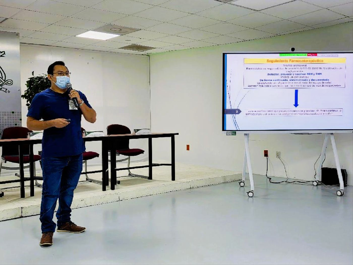 En esta celebración se presentaron cuatro conferencias que compartieron experiencias en el ámbito farmacéutico, como la del Mtro. Gaspar Aké Uh, Responsable Sanitario de Farmacia del Hospital General de Zona y Medicina Familiar no. 1 del IMSS y egresado de la Licenciatura en Farmacia de esta casa de estudios, con la presentación presencial “Experiencia profesional en el seguimiento farmacoterapéutico de pacientes hospitalizados en un hospital privado!
