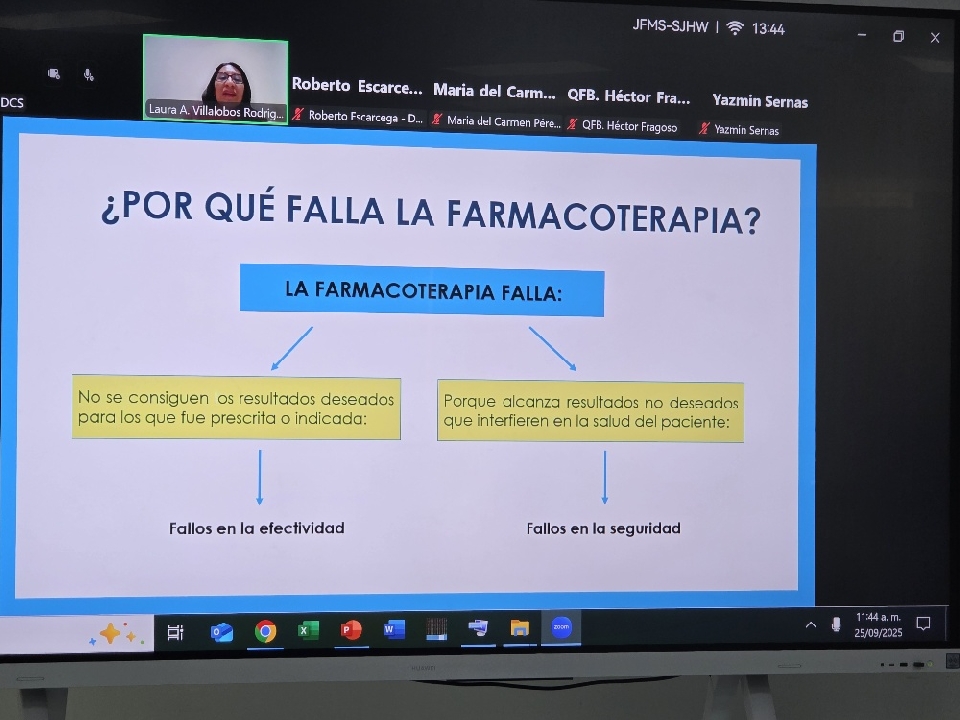 “El impacto de la Farmacia comunitaria en la adherencia al tratamiento” fue conferencia virtual a cargo de la Dra. Laura Alicia Villalobos Rodríguez, Profesora colaboradora de la Universidad Abierta y a Distancia de México”.