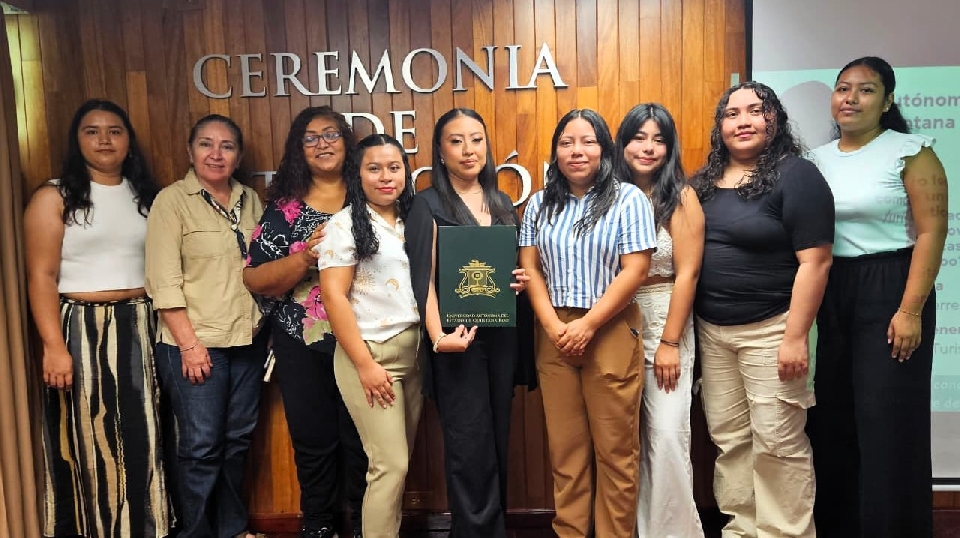 Teresita de Jesús Gutiérrez Anchevida, obtuvo el grado de Licenciada en Gestión de Turismo Alternativo por la Universidad Autónoma del Estado de Quintana Roo el 9 de octubre del presente al obtener por mención honorifica la aprobación de la tesis titulada “Trabajo femenino y bordados artesanales como un recurso de aprovechamiento turístico: estudio de caso X-Pichil, Quintana Roo”. Esta investigación forma parte del proyecto denominado “El trabajo femenino y el turismo comunitario en Quintana Roo. Caso X-Pichil”, registrado ante la Dirección General de Investigación, Posgrado y Vinculación, con una vigencia que abarca del 18 de marzo al 10 de diciembre de 2024.