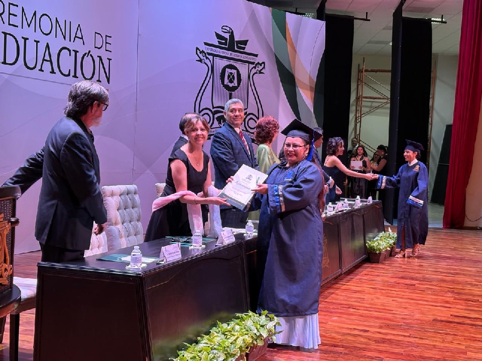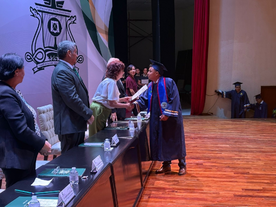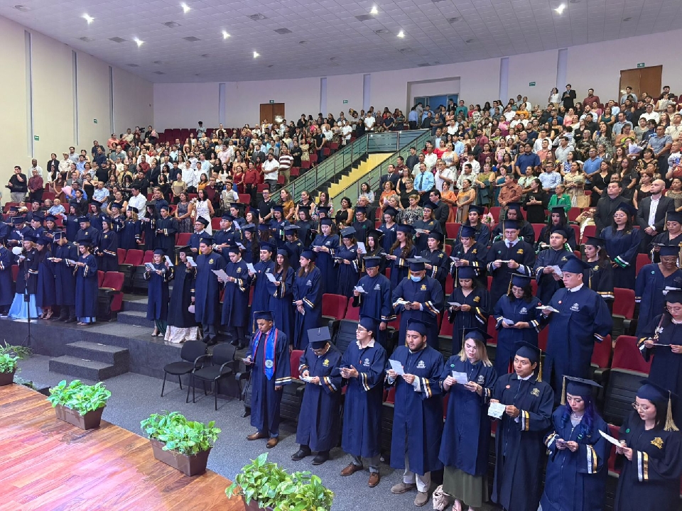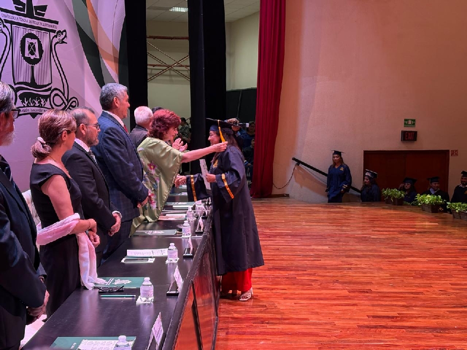 El 31 de octubre en el teatro del Centro Cultural la Rectora, Dra. Natalia Fiorentini Cañedo encabezó la ceremonia en la que se entregaron reconocimientos como egresado a 243 alumnos de 6 programas educativos de Licenciatura de los campus Chetumal Bahía y Chetumal Salud.
