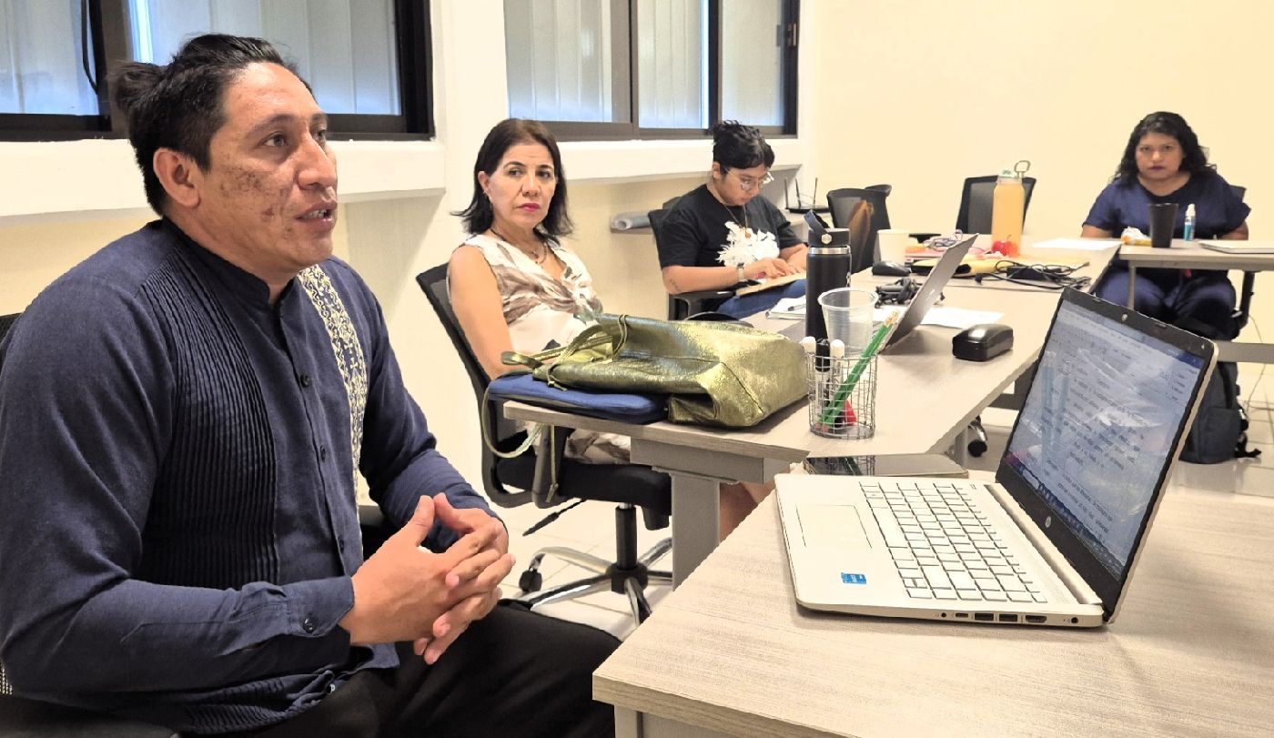 El alumno de la maestría Oscar Yeh Chan presentó el caso “Difusión digital: venta y promoción cultural de las artesanías de las mujeres mayas de Uh-May, Quintana Roo”, con la participación de tres artesanas de la comunidad de Uh-May.
