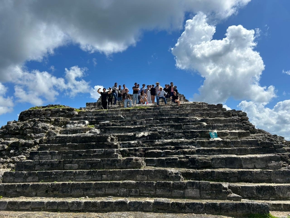 La jornada concluyó el viernes 23 con una visita académica a la zona arqueológica de Ichkabal, en el municipio de Bacalar, realizada en el marco de la asignatura Diseño de Políticas Públicas. El objetivo de esta actividad fue analizar el Programa de Mejoramiento de Zonas Arqueológicas (PROMEZA) en relación con el megaproyecto del Tren Maya, reflexionando sobre los impactos de las políticas de desarrollo turístico y patrimonial en los territorios del sur de Quintana Roo.