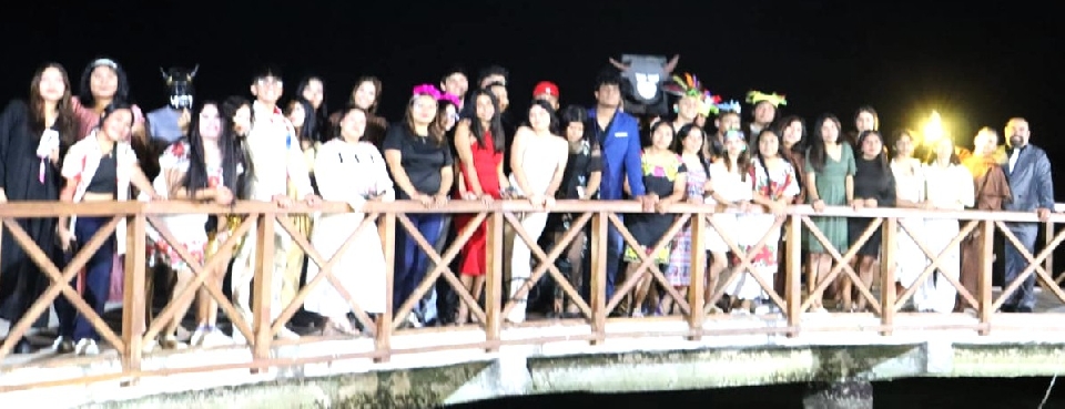 El 31 de octubre, la Universidad Autónoma del Estado de Quintana Roo llevó a cabo con gran éxito la actividad cultural “Barrio Mágico: Leyendas Vivas de Chetumal”, un recorrido nocturno que reunió una treintena de asistentes en el Boulevard Bahía, quienes disfrutaron de la representación de siete leyendas locales en espacios emblemáticos de la ciudad. Con este evento donde se promovió la vinculación entre la universidad y la comunidad, se reafirma el compromiso institucional con la promoción cultural y el desarrollo sostenible del turismo local.