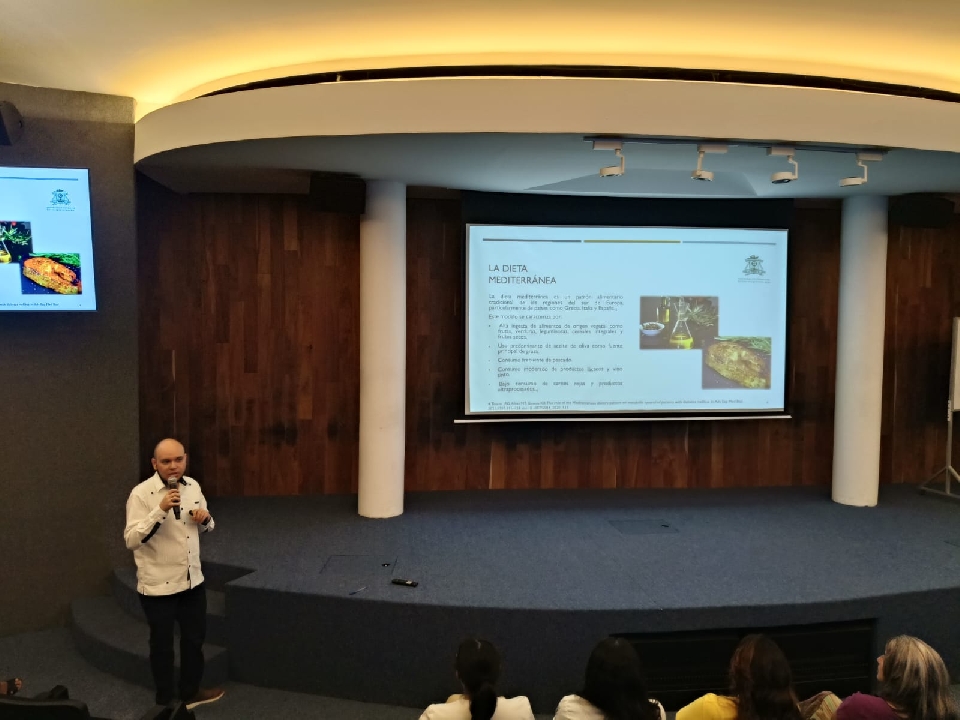 Otra fue la conferencia “Fundamentos Científicos y Retos Culturales en la Adaptación de la Dieta Mediterránea a la Península de Yucatán”, impartida por el Dr. Hugo Alejandro Panting Villalobos, que abordó la relación entre nutrición, cultura y hábitos alimentarios regionales.