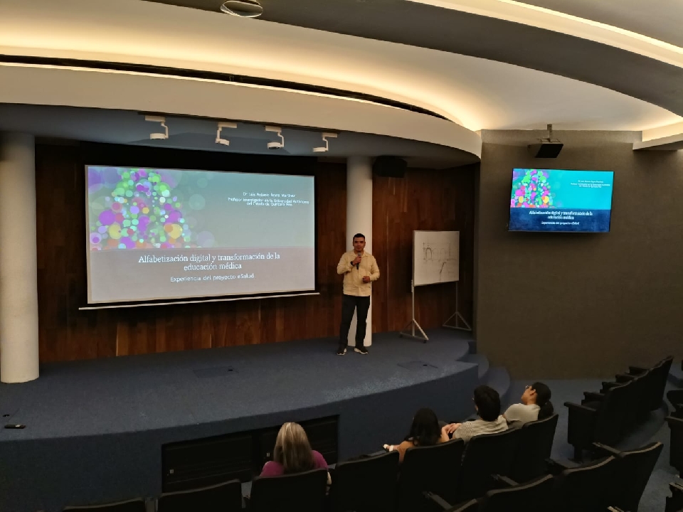 De igual forma el Dr. Luis Antonio Reyna Martínez dictó la conferencia “Alfabetización digital y transformación de la educación médica: experiencia del proyecto eSalud”, en la que se compartieron los avances del proyecto de investigación sobre salud digital en la formación universitaria en ciencias de la salud.