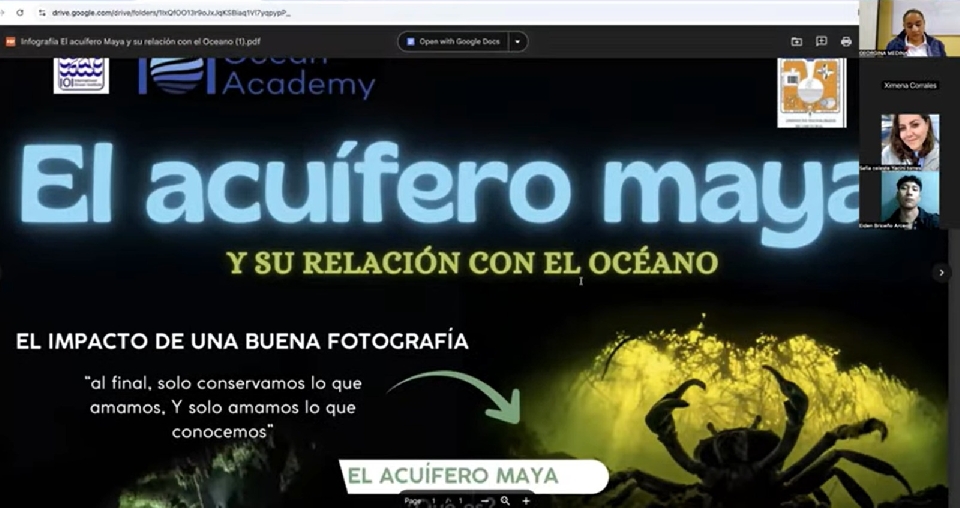 El Acuífero Maya y su relación con el océano de Kamila Solangel García Alvarado Samanta Pratt, Samah Wellness, Irandi C. Zapata Torres, César Jared Tadeo Llovera, Meraliz Valentín Damián, Natalia Guadalupe Nahuat Chan, Amaya Aranzazu Chuc Mis, Natalia Zapata Torres, Vianey EK García y Eiden Briceño Arceo.