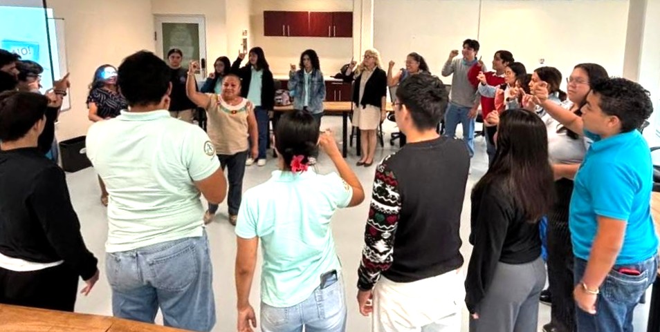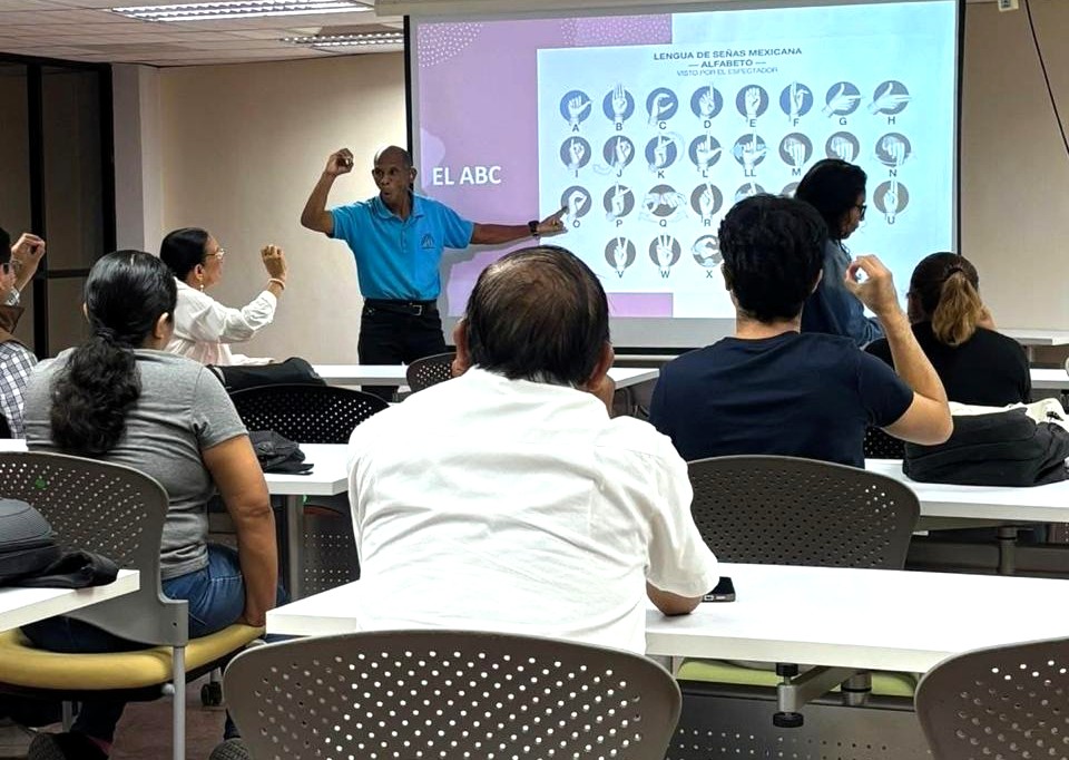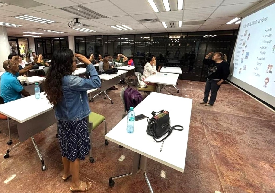 Con el objetivo de difundir la lengua de señas mexicana y la cultura del sordo en el marco del Día Nacional del Sordo el 28 de noviembre, se realizaron en los campus de la Universidad Autónoma del Estado de Quintana Roo, Chetumal Bahía y Chetumal Salud, tres talleres sobre la Lengua de Señas Mexicana, a cargo de la Prof. María Ontiveros Dzul, maestra oyente competente en la lengua de señas mexicana con la asistencia de Carlos Hendricks y Guadalupe Torres, dos instructores sordos como modelos lingüísticos. Este evento fue inaugurado por la Mtra. Luz del Pilar García Coronado, Supervisora de Educación Especial de la SEQ. Cada taller tuvo dos horas de duración y contó con la participación de la comunidad universitaria, tanto estudiantes, como personal académico y administrativo.